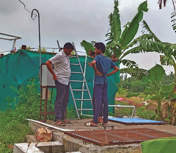 When VCF approached the sarpanch (village head) of Laxmipuram, he was keen to employ the technology. He provided a plot for the biotech unit and used government-allotted funds to make drains that would channel household wastewater directly to it.
