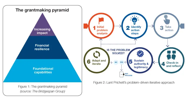 4. Avoid one-size-fits-all MEL frameworks: Lant Pritchett’s principles of ‘problem-driven iterative adaptation’ apply as much to NGOs as to governments (see figure 2). Rigid indicators from donor-mandated frameworks often undermine learning. NGOs need space to adapt MEL systems to local problems and contexts instead of adapting cookie-cutter approaches and best practices that may have worked in a
